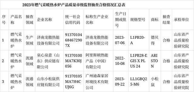 【濟南】2023年第一批燃氣采暖熱水爐產品質量市級監督抽查結果