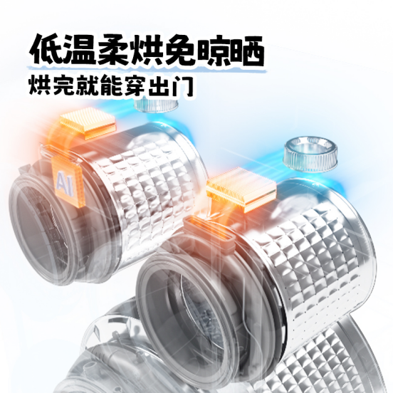 除了烘得自由,更要烘得放心。雙小筒采用PTC智能柔烘科技,低溫烘干呵護嬌貴面料,羊毛、棉麻衣物不縮水、不變形。同時具備毛屑自清潔功能,高壓水流自動沖洗濾網無需手動清理,告別二次污染。